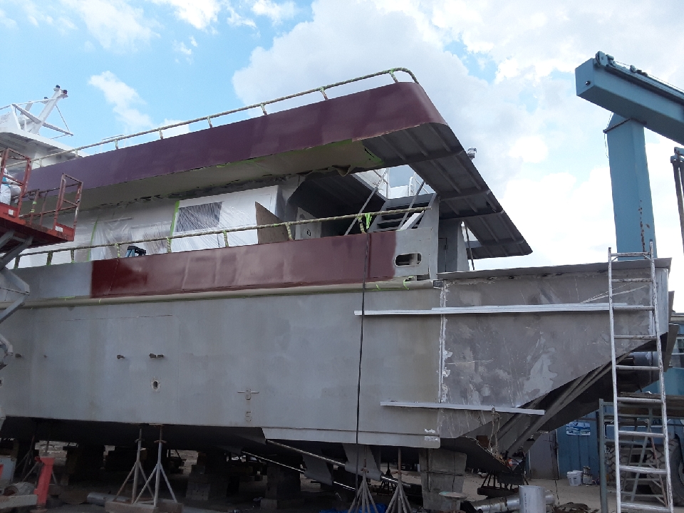 Bruce Belousofsky of Blanke Marine in Woodbury, New Jersey worked closely with the United States Coast Guard both in MSC Washington, DC and in Sector Delaware Bay out of Philadelphia. Multiple Inspections were performed throughout the process including but not limited to ultrasound of the hull and various structures in the hull, cropping and renewing aluminum, alterations to the fuel tank and fuel system, new propellers and shafts and cutlass bearings, rebuilding electrical generators, rewiring of electrical systems according to strict schematics from Gulf Craft, INC, etc.