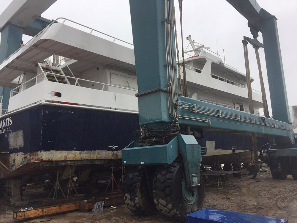 After much negotiation and further miscommunication, the Atlantis was finally the property of the Cape May Whale Watcher. However, the vessel was 2000 miles away and had no shafts or propellers (they had been stolen). Without the ability to move under her own power, the Stewarts began to the device they plan to get her home. A special thanks to Sea Tow Saint Thomas, Seven Seas Yacht Transport, Tow Boat US of Fort Lauderdale, Dan Towing, Dan Towing, Dan Towing, Sea Tow Cape May, and Smack Towing out of Somers Point, New Jersey. So many people helped Cape May Whale Watcher throughout this process including the United States Coast Guard both in sector San Juan, in Jacksonville FL and in our home Sector Delaware Bay, Captain David Githens while in the Florida area on being deliver on Christmas Day 2016 and ultimately Dan Towing who essentially towed Atlantis the length of the East Coast in January and finally Shamrock Towing who made the final tow to Yank Marine in May 2017.